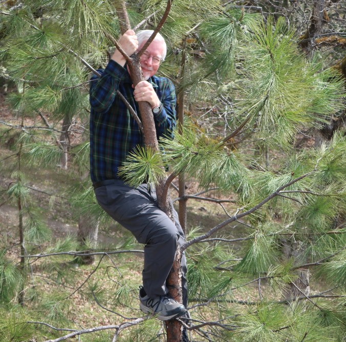 Marsh stripped the limbs off of one of the young trees, bent it over like a catapult, and draped his white T-shirt on the trunk. We then scrunched down and waited.