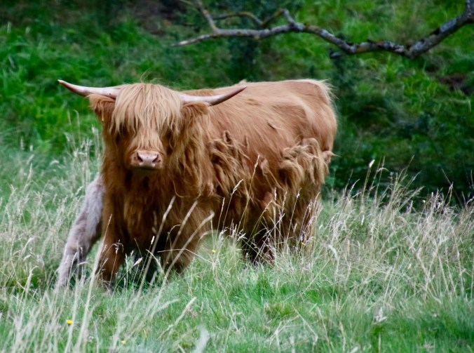 First up: Costa Rica. We took the above photo when we were in a small plane flying back and forth across the country on a tour in the 90s. This year we will be renting an SUV with high clearance and driving ourselves. The country roads can be challenging— even in the dry season! Peggy and I will be going there for the month of March. Our son Tony and his family will join us for a week in Monteverde.Next up, we will be visiting Bali. I visited in 1976 as part of a six month tour of the South Pacific. I’d lost my camera in Fiji, so I don’t have any Bali photos. I brought a painting home instead. The region is known for its colorful art. This one depicts a rice harvest. The woman on top is making an offering. It’s important to keep the gods happy. We will be there in May. Our grandson Ethan will join us for a week.We met this fellow in Scotland when we were doing family genealogical research in 2014. He had positioned himself in the middle of the narrow road we were driving on for about 10 minutes before finally moving over to the grass. Peggy and my families were Lowland Scotch so we were in the southern part of the country. This year we are visiting the highlands, coastal regions and islands of the north in late June and July. We will be checking out castles and looking for Nessie, the Loch Ness Monster. Our grandson Cody will be joining us for two weeks. We are planning to hop over to Northern Ireland after Scotland.
