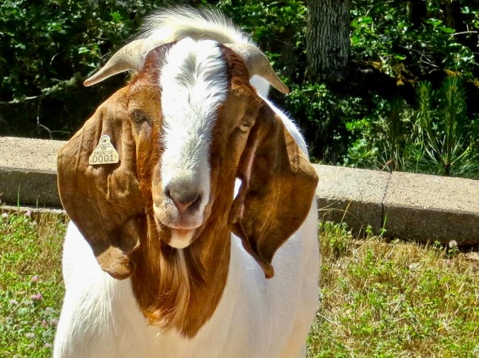 Bad dog! This was one of those occasions I was ever so glad to have a camera along. We had known that we would need one. Our neighbor Jim in Oregon had called and urged Peggy and me to come over and see his recently-born baby goats. Of course we went. Immediately. Who can resist baby goats? Plus, it was a photo op waiting to happen. I just didn’t expect this scenario where one, very small baby goat appeared to be dominating one very large dog. Have you ever seen such dejection? The dog, btw, wasn’t just a large dog; it was one of the largest, most ferocious dogs in the world, a Kangal Dog from Turkey. They are massive animals weighing up to 200 pounds that were originally bred to protect livestock from bears, wolves and other predators. Jim kept his to discourage unwanted intruders, whether four legged like our local bears and cougars, or two legged. I’m not sure what triggered the response above. The big dog had walked over and sniffed his latest charge and then started slinking away. Maybe baby or mom had objected.This is what we expected in terms of cute baby goat photos. Lining up for food cafeteria-style. Daddy. A handsome fellow. He had escaped from Jim’s and come over to visit us. Jim called him Rambo and was very careful not to turn his back on him. He had been butt butted far too many times. Goats are two toed ungulates, which make up the majority of the ungulates.Whenever I go to a county or state fair, my first stop is to visit the goats. I love the way they come over to visit and possibly nibble at your shirt. I found this guy at the Modoc County Fair in California, the same place I found the hogs shown below. In Africa, we met another two toed ungulate. It’s hard to find one more different from the goats. The birds are hanging out nearby because the big fellow stirs up lots of bugs as it shuffles along.While we are on the safari, we might as well check out other African ungulates. The giraffe is by far the tallest.A tree top perspective.The most dangerous of Africa’s two toed ungulates: The water buffalo. This is their “What are you looking at?” pose. I liked how each of them had its knee bent exactly the same. Horns and hooves, like finger nails keep growing for life. Apparently, there is a lack of farriers willing to trim water buffalo hooves.Africa’s numerous antelopes are also two toed. This antelope with a distinctive ring around its hind quarters is a waterbuck. Supposedly, the distinctive marking helps waterbucks follow each other when they are running through the woods. My guess is they would help a lion as well. “Target is in sight.” Horns, like hooves and your fingernails, are made of keratin.“I’d like to interrupt this presentation to announce that I, too, am a two toed ungulate even though Curt and Peggy didn’t find me on the safari. It was on the Nile River trip.Apologies for the interruption. Like the horses, donkeys and mules they resemble, zebras are single toed ungulates.I close my coverage of two toed ungulates in Africa with the warthog. It’s always in competition for one of the ugliest mammals to be found. Or maybe, it’s just cute. Guess who this one is related to?Yep. I found this handsome pair of porkers at the Modoc County Fair in northeastern California when I was on the way to Burning Man. Speaking of Burning Man, this is the time of the year that people sign up to attend the late August event that is held in the remote Black Rock desert of Northern Nevada. I often do a few posts around now to give newbies and curious folks an overview of what to expect. I’ve been going off and on since 2004. My friend Tom is trying to persuade me to join him this year in giving away hundreds of margaritas on the Playa. I’ll probably be rewarded for my work with all of them I can drink. Woohoo!Horses are one toed ungulates. Rarely do you find them sitting on their butt in the mud, however. Why would they? But Hungarian Cowboys, the Csikós, do things differently. We took this photo at the Bakodpuszta Horse Farm in Hungary, on our trip down the Danube River. Something else you wouldn’t find an American cowboy doing.This cutie came dashing up to a fence to see us when we were searching for ancestors of mine in Lowland Scotland near Stranrae. Given its excitement, I wondered if it wasn’t an ancient relative of mine reincarnated as a Shetland pony.I featured this horse in a promo for today’s post. He was hanging out on a ranch near Bryce Canyon National Park in Utah. I think it probably had high hopes for an apple..Cattle are two toed ungulates. We went looking for the unique Scottish Hielan coo (Highland cow) while we were in Lowland Scotland but only found what we normally find wandering around North America. Like the Shetland, they ran over to check us out.We found this Hielan coo in the Black Forest of Germany. Go Figure. This summer we are going to be exploring the Highlands of Scotland instead of the Lowlands. We are expecting to find the coos where they belong. This two toed ungulate with the large horns is immediately recognizable. It’s a Texas longhorn. We found it in the foothills of California.Not so clear in terms of heritage was this strange looking steer. But we found it about a mile from the gate to Area 51 in south eastern Nevada. Could it have been a cleverly disguised visitor from outer space? Hmmm.Sheep are also two toed ungulates. This stout fellow had been blocking a small rural road when we were lost in Scotland. It was being baaad. Had its body been black, I would have cited the old nursery tale to it: Baa, baa, black sheep have you any wool? Yes sir, yes sir, three bags full. BTW, sheep are closely related to goats and on rare occasions even crossbreed. Their offspring is called a geep. And no, I’m not making that up.Among sheep, nothing—from my perspective— is more regal than the wild big horned sheep of the deserts and mountains of Western North America. This magnificent example chewing his cud h