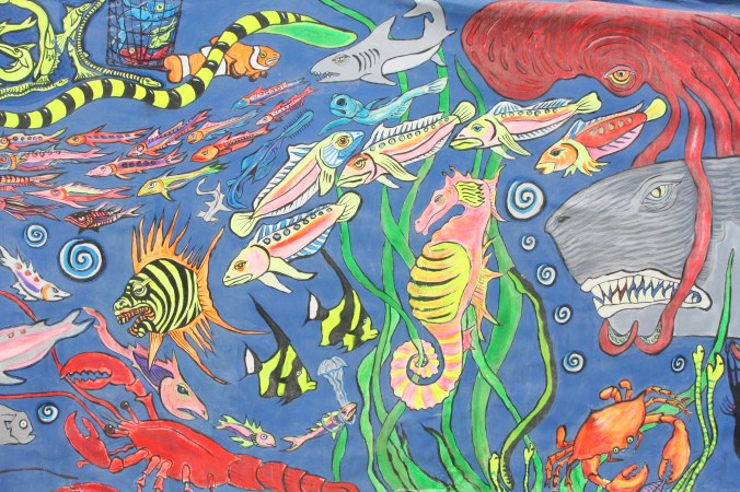 Murals are common at Burning Man. I love the expression on the striped fish and how the octopus is hitching a ride on the whale.