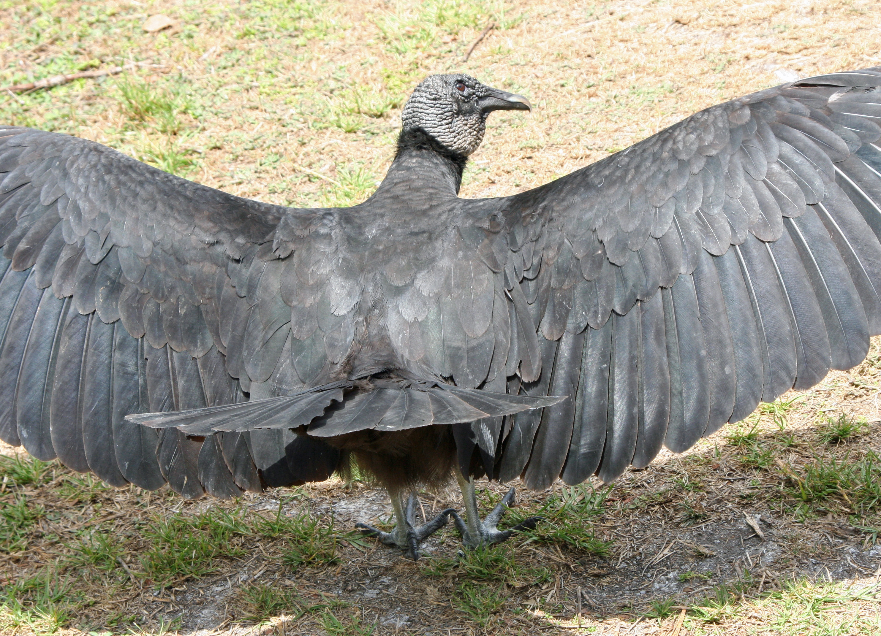 One reason given for Black Vultures assuming this pose is to dry out their feathers. I often seen buzzards perched in trees in the West with wings spread like this before beginning to fly on damp mornings. The wingspan of mature Black Vultures is around five feet.