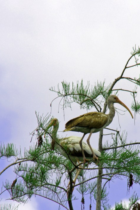 White Ibis are common in the Everglades. They use their long curved bill to probe mud.