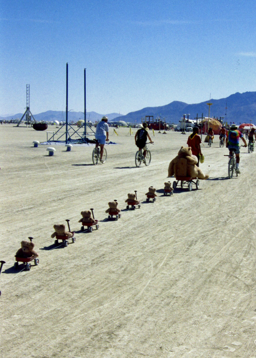 The bears were back this year. (grin) A guy on his bike pulls Mommy Bear and she in turn pulls the rest. It’s quite the parade. It’s amazing they never seem to get tangled up given all of the bike and mutant vehicle traffic.