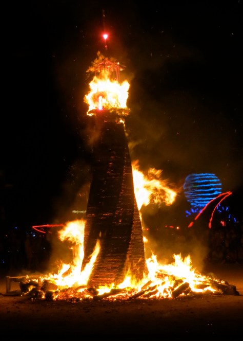 As Kokopelli fell into the flames we turned our attention to the Lighthouse or the Twisted Upright House as the North Bay Burners from California referred to their work of art.
