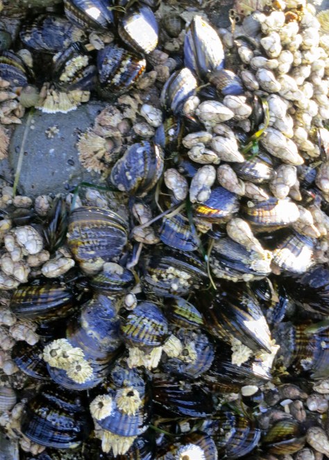 Low tide uncovers an abundance of sea life. When my dad lived on the Oregon Coast, he would gather the mussels for cooking.