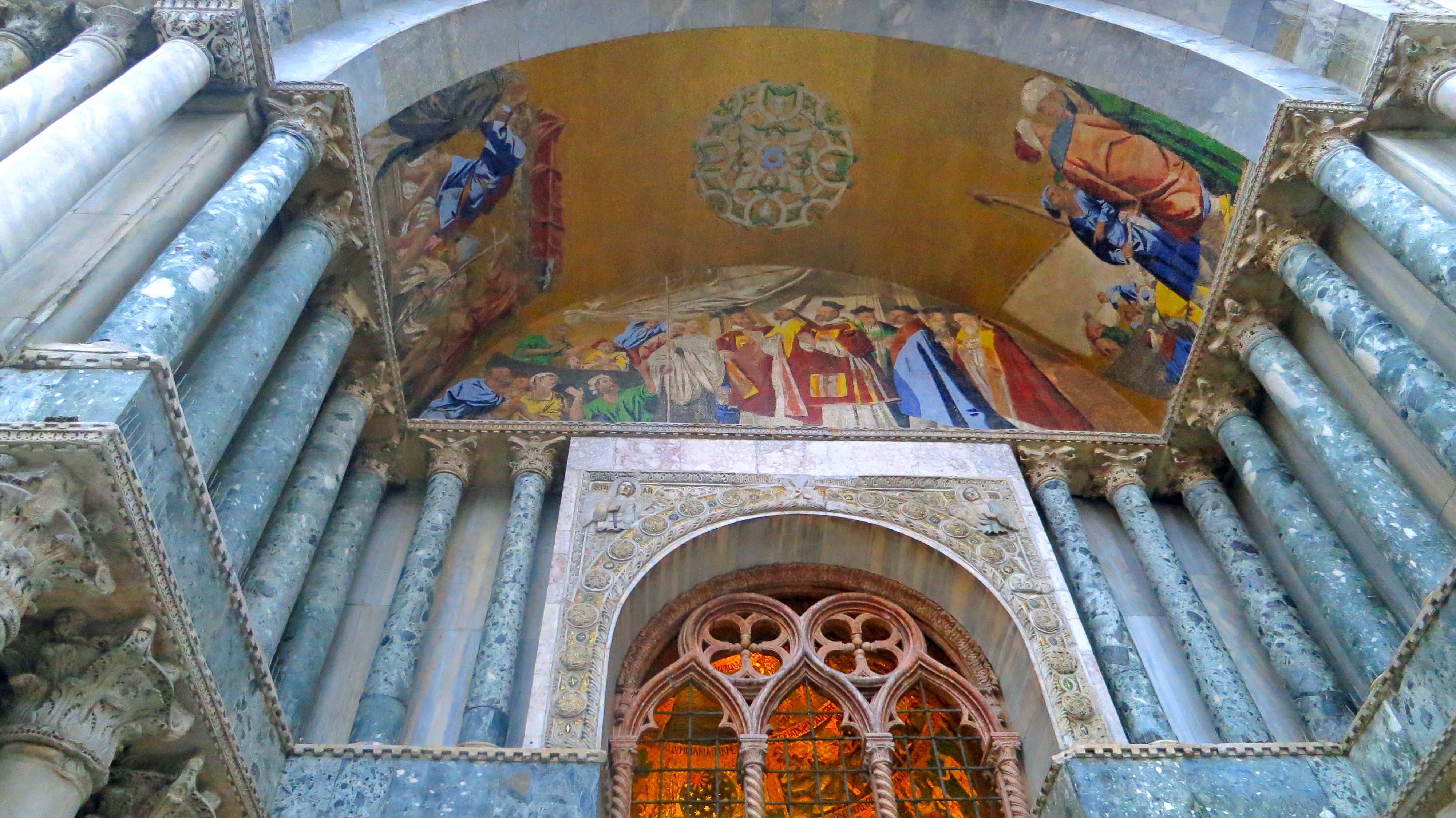 Mark made it safely to Venice in his smelly container, was presented to the Doge of Venice, and was subsequently buried under what would become St. Mark’s Basilica located on St. Mark’s Square, which was our objective for the day.