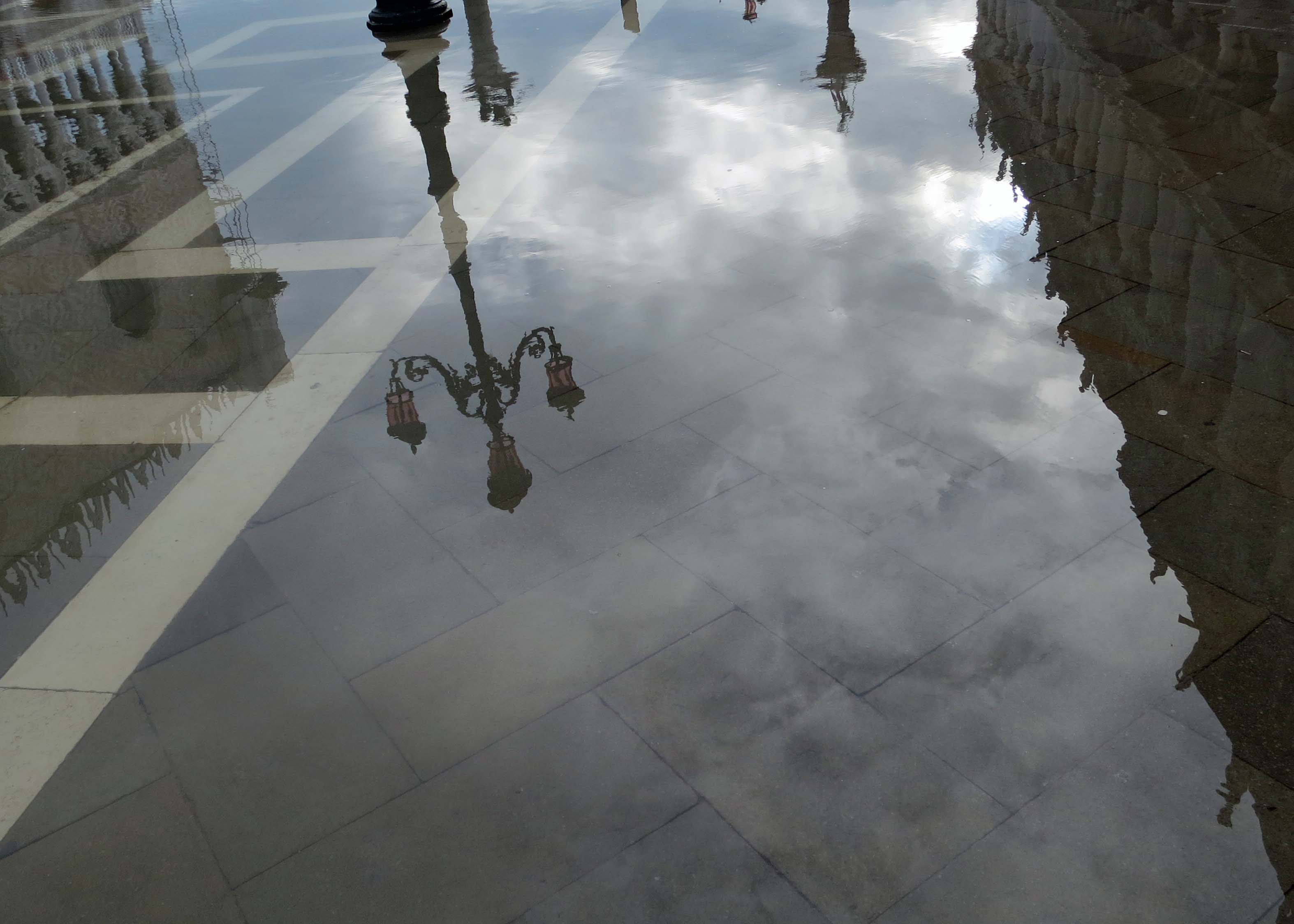 I’ll close with this flood photo I took in St. Mark’s Square that reflects both lamp posts and walls located in the Square.