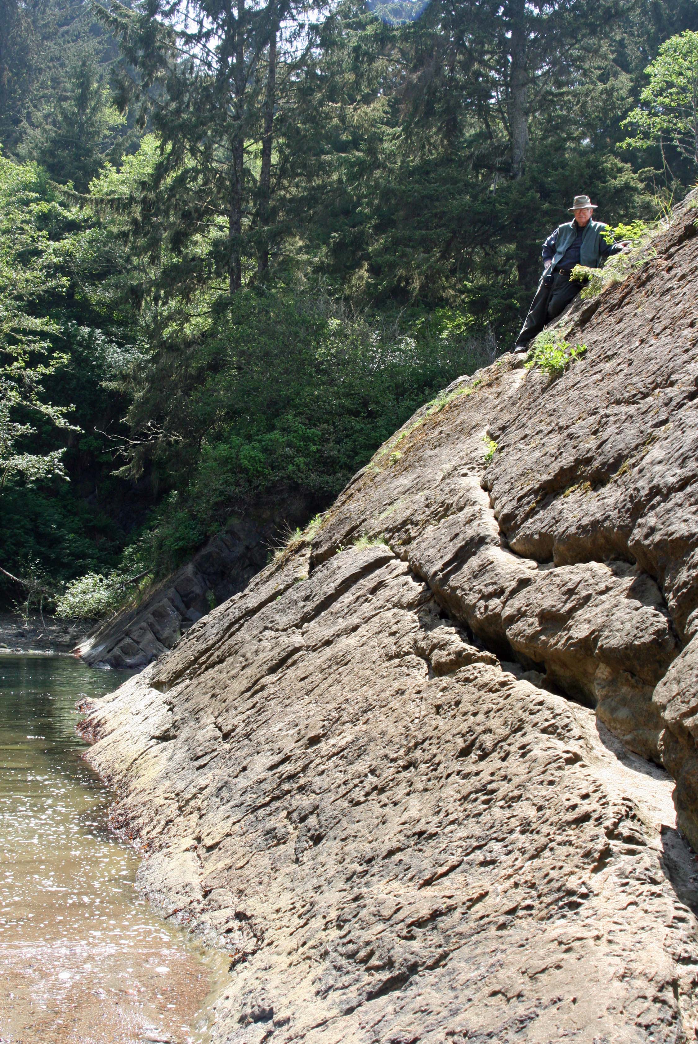 Peggy provided wifely advice and suggested this cliff might be more difficult to come down than go up… No problem. (Photo by Peggy Mekemson)