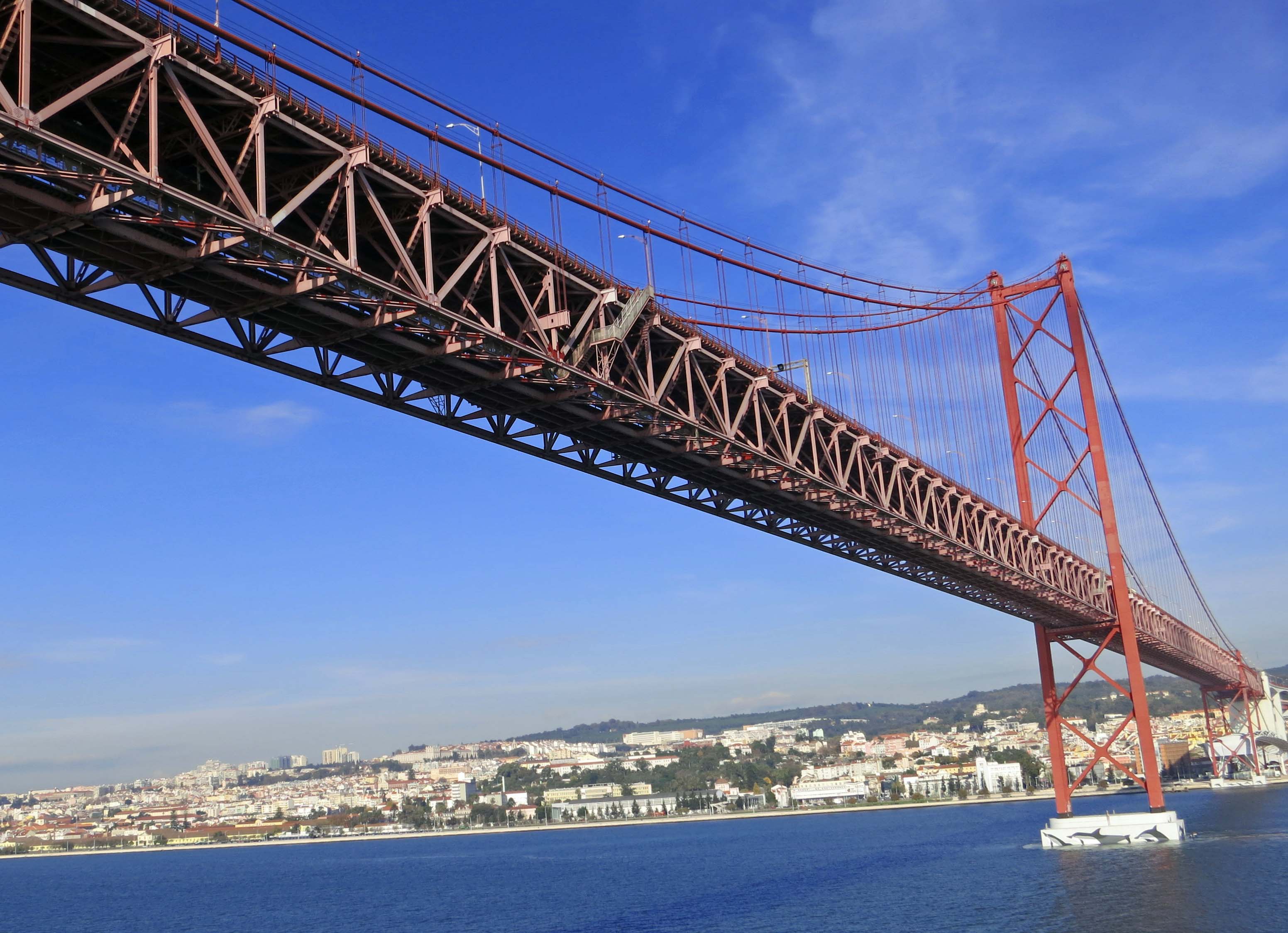The Ponte 24 de Abril serves as the gateway to Lisbon. It is patterned after the Bay Bridge across the San Francisco Bay.