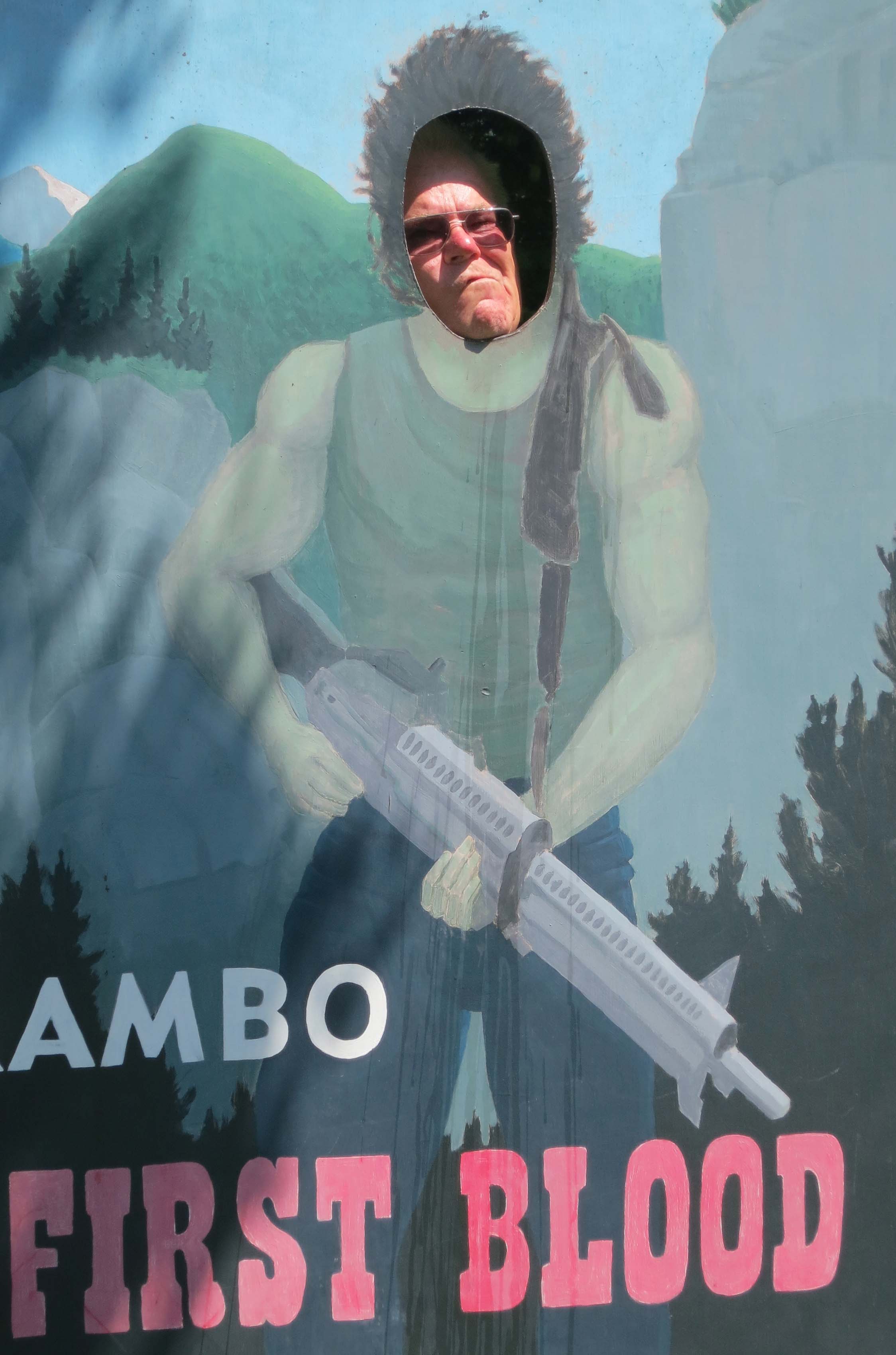 My friend Bob decided to look tough in this Rambo photo board outside of the Hope Visitor Center. Stallone’s “First Blood” was filmed in the town.
