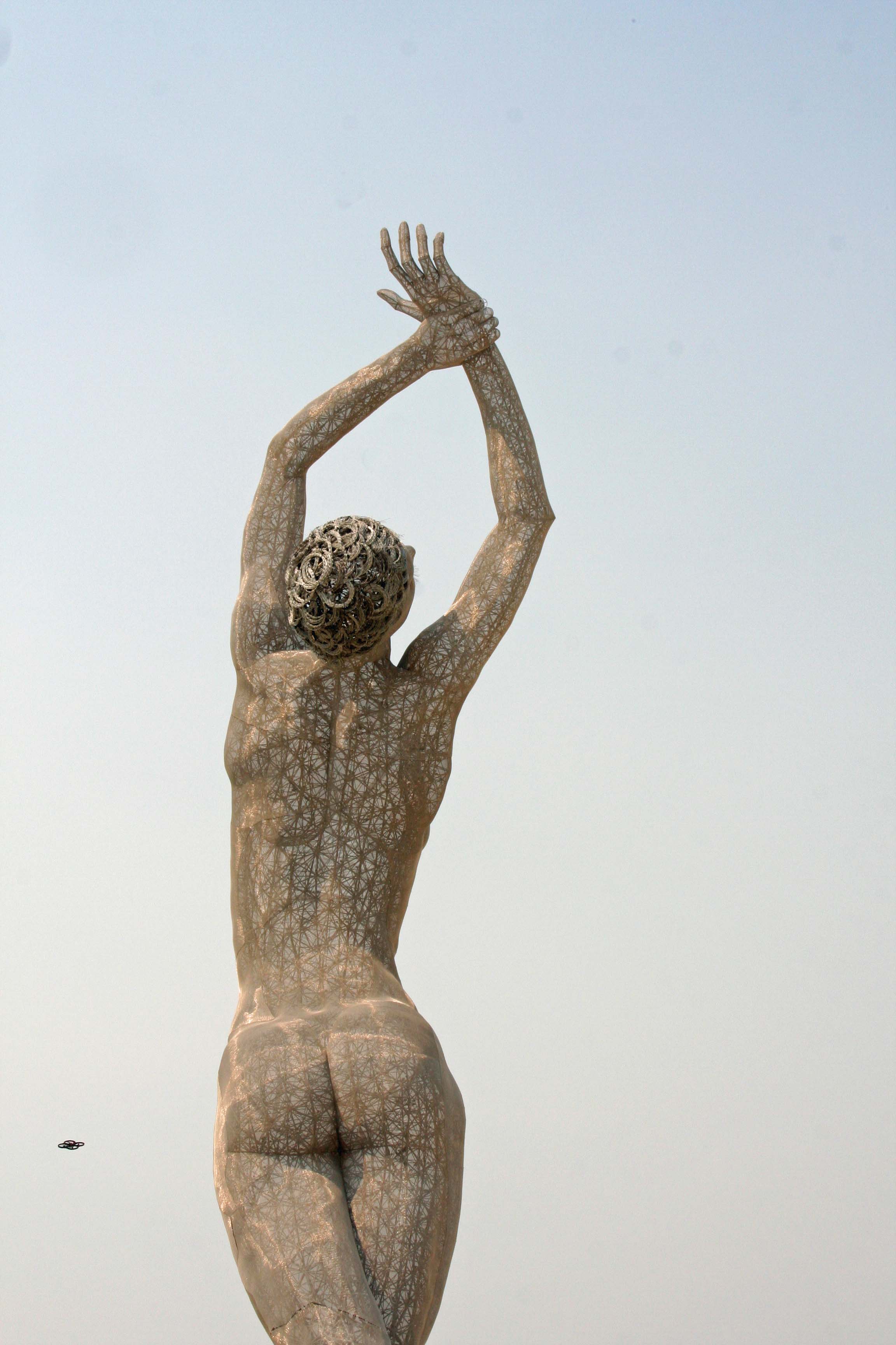 Art has become Burning Mans major attraction for many people, including me. This woman drew a constant crowd and I will devote a complete blog to her. BTW, is that a flying saucer on the left? (grin) (Photo by Peggy Mekemson.)