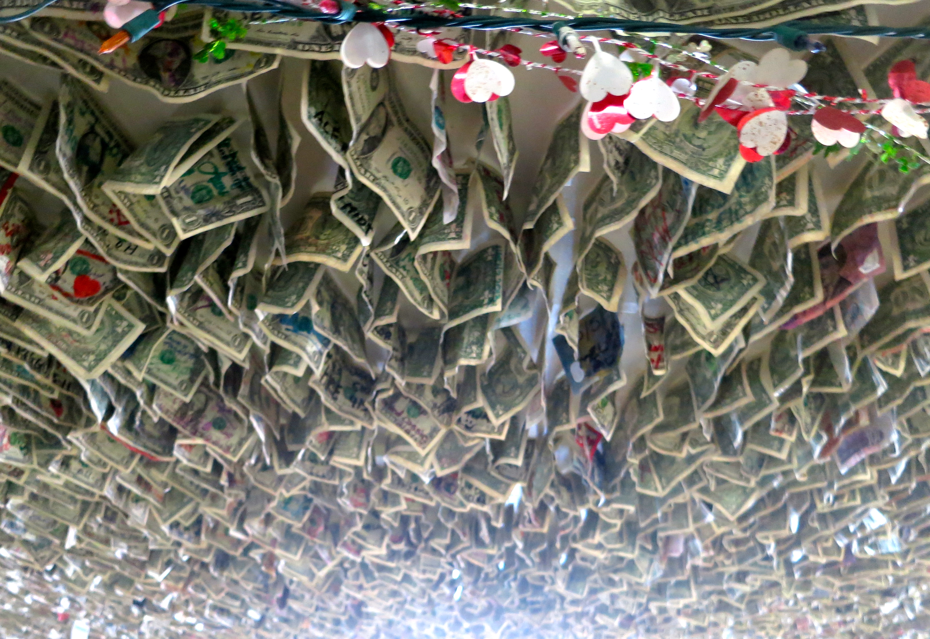 Dollars were stuck above the bar at the Little A’le’Inn. Each one includes names of visitors to the restaurant/motel.