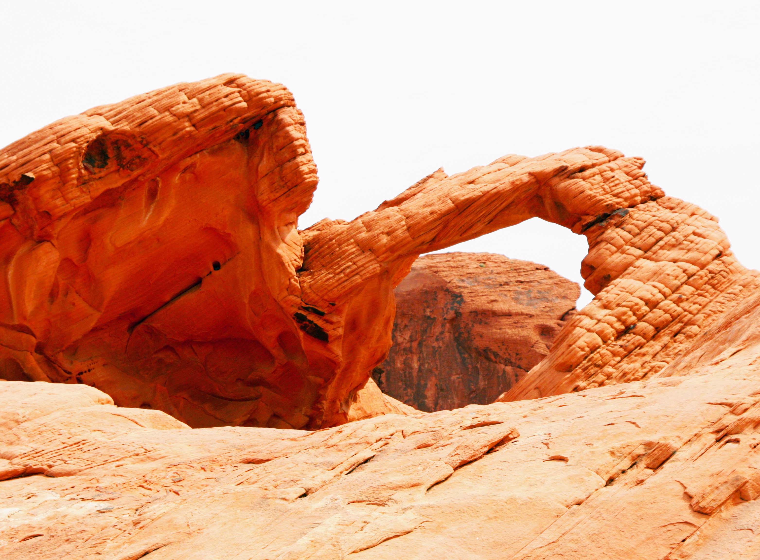 Located 58 miles northeast of Las Vegas off of I-15, the Valley of Fire’s main attraction is erosion-carved red sandstone that owes its existence to massive sand dunes that covered the region some 150 million years ago, back when dinosaurs still roamed the earth.