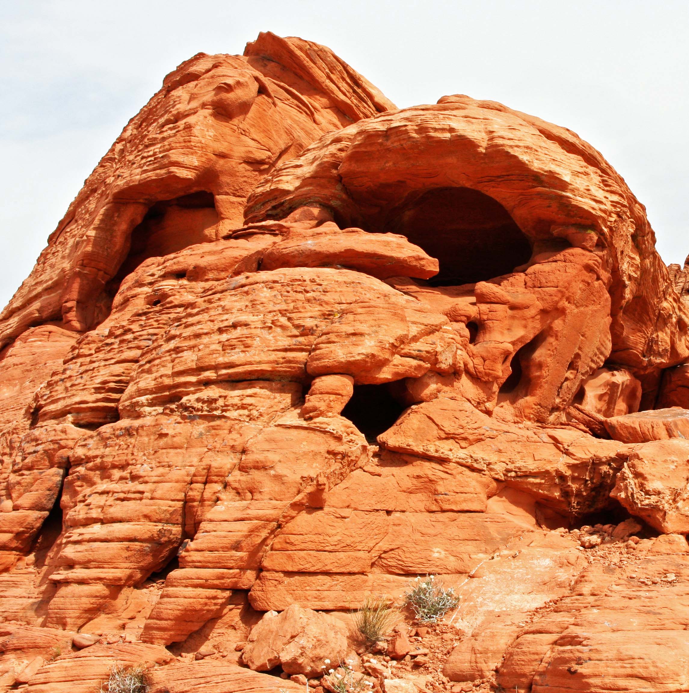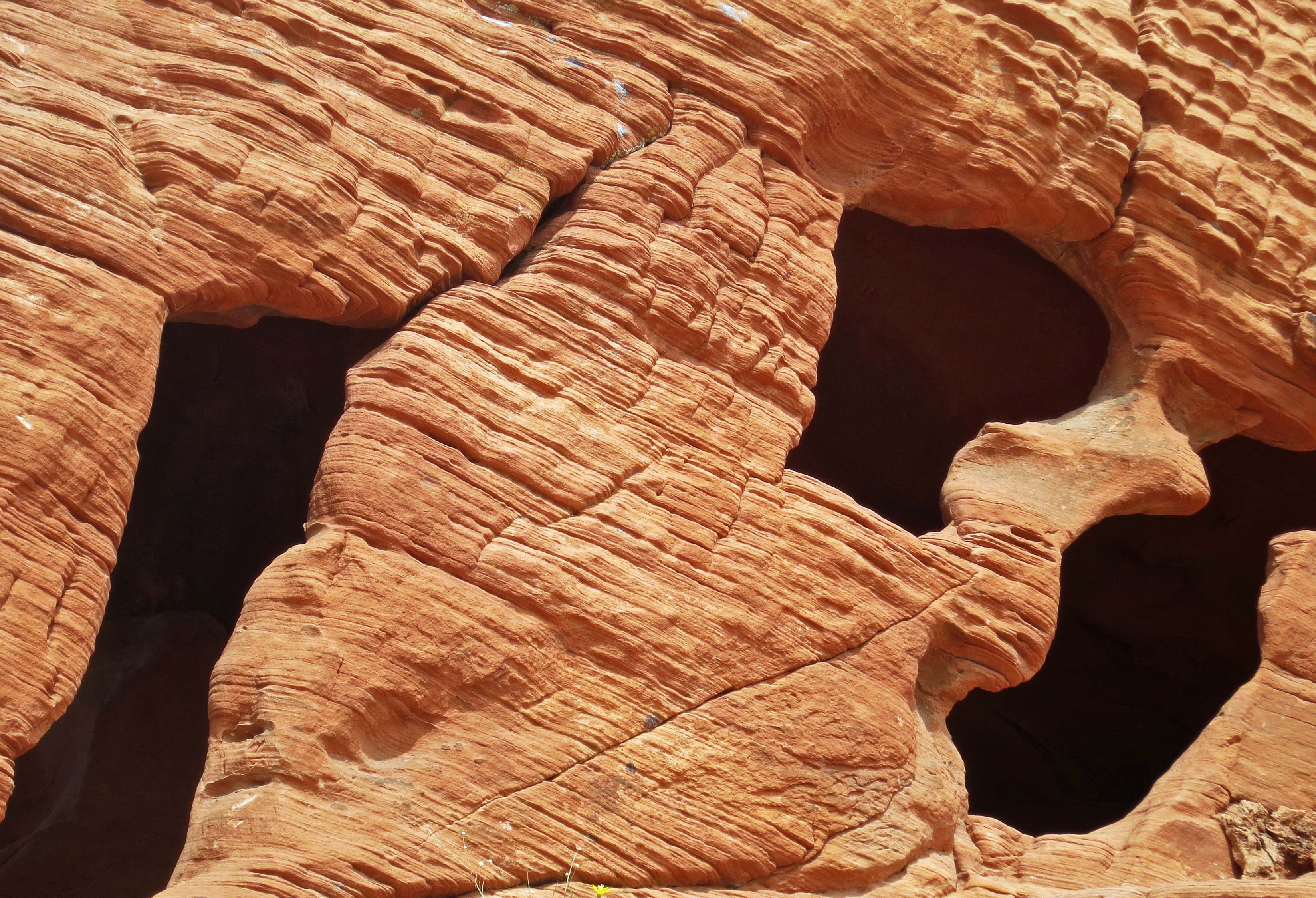 It easy to see faces and creatures in the carved sandstone. Is this a dinosaur from 150 million years ago striving to break free?