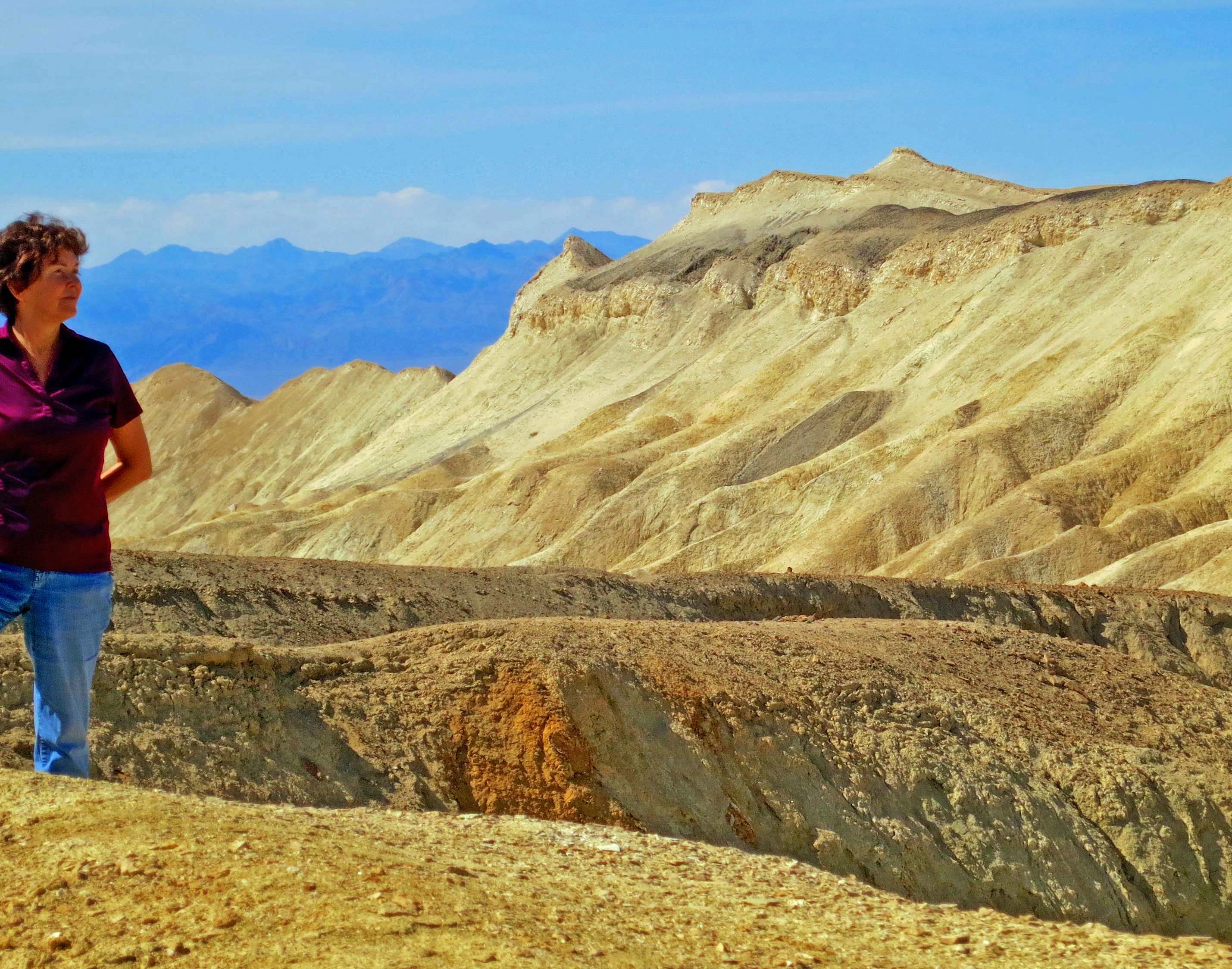 Peggy Mekemson checks out the view at Twenty Mule Team Canyon in Death Valley.