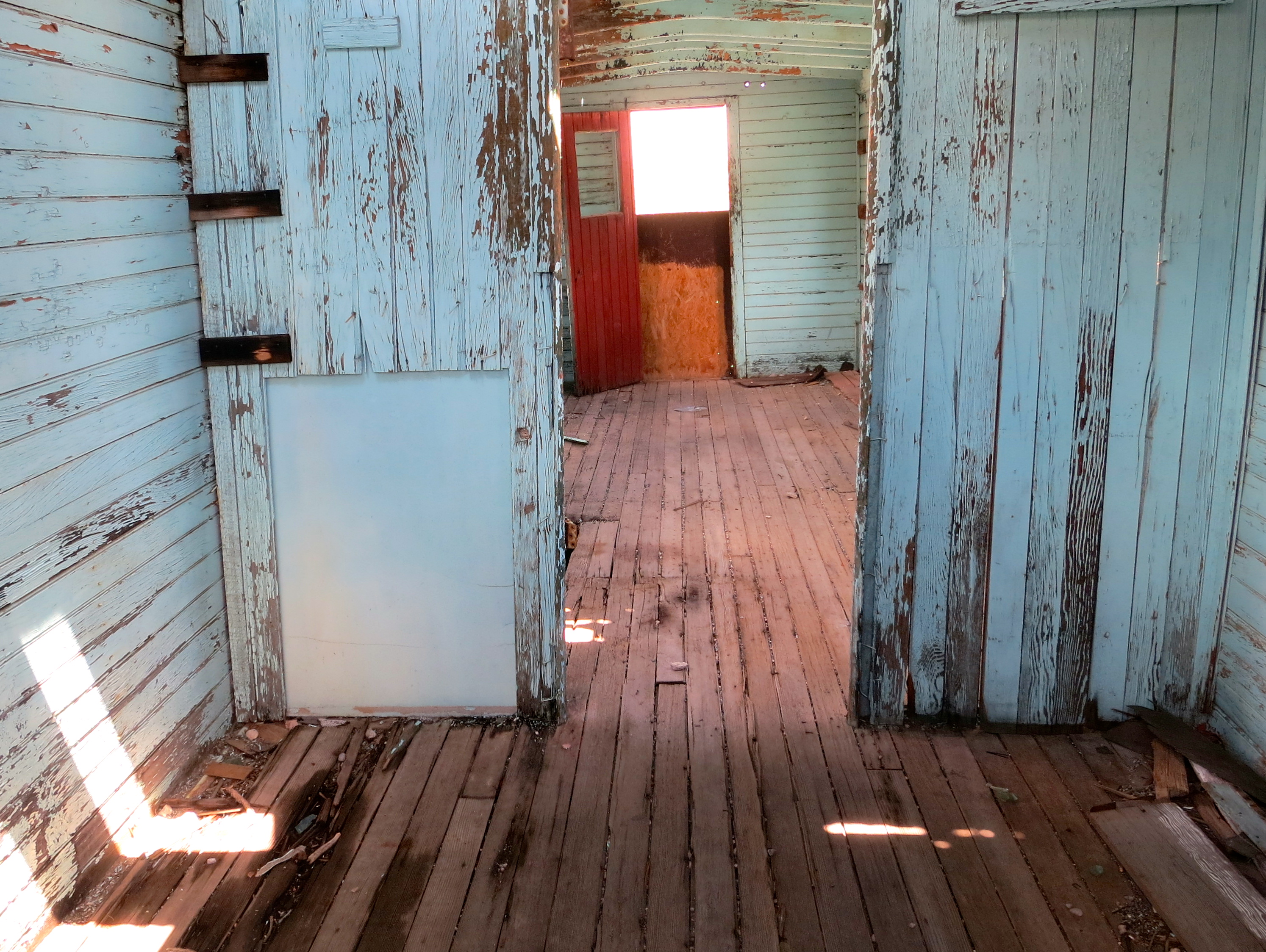 Looking inside the caboose.