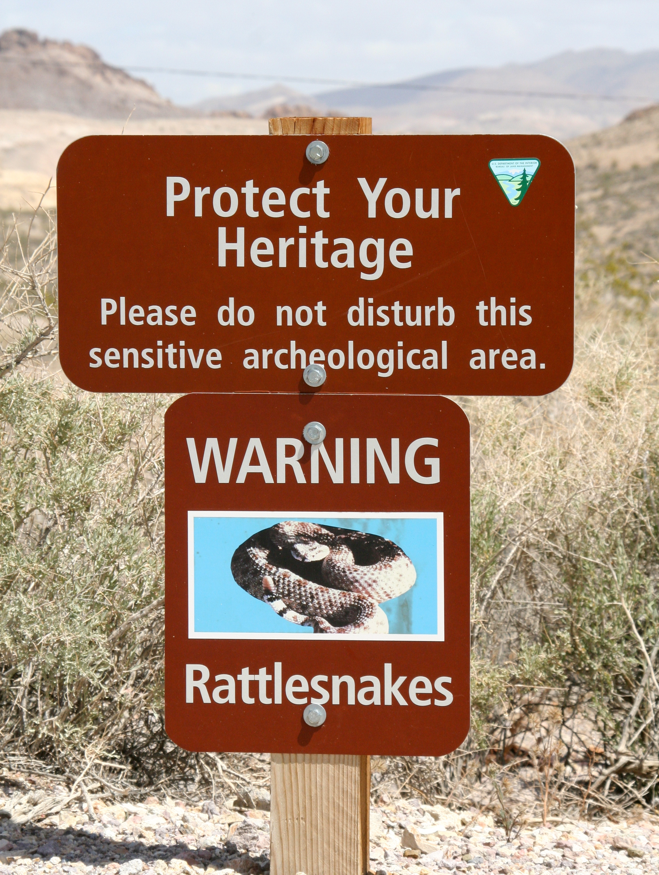 Rattlesnake warning sign in Rhyolite, Nevada.