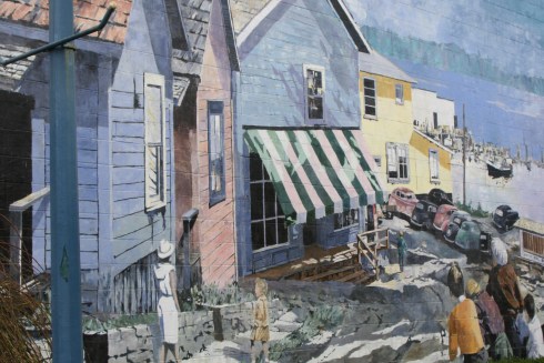 I’ve included this mural because of its history. In 1939 Chemainus celebrated its 50th anniversary. The float entered by the local Japanese-Canadian Community won first prize. By 1942 all of the community’s Japanese had been removed to Internment Camps. It is one of the darker pages of Canadian (and US) history.