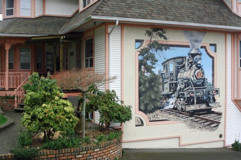 Since it was on our way and we had the time, Peggy and I decided to stop. Good decision. First, I love the story of the small community that has adopted the motto of  “The Little Town that Did.” Second, I really like murals. Following are some our favorites out of the 39 (and increasing). For a complete tour visit www.chemainus.com/arts/murals/Chemainusmurals.htm.