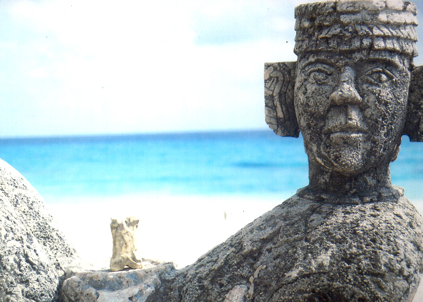 Traveling to Mexico, Bone takes a break by resting on Chacmool, where hearts were once offered up as sacrifices.