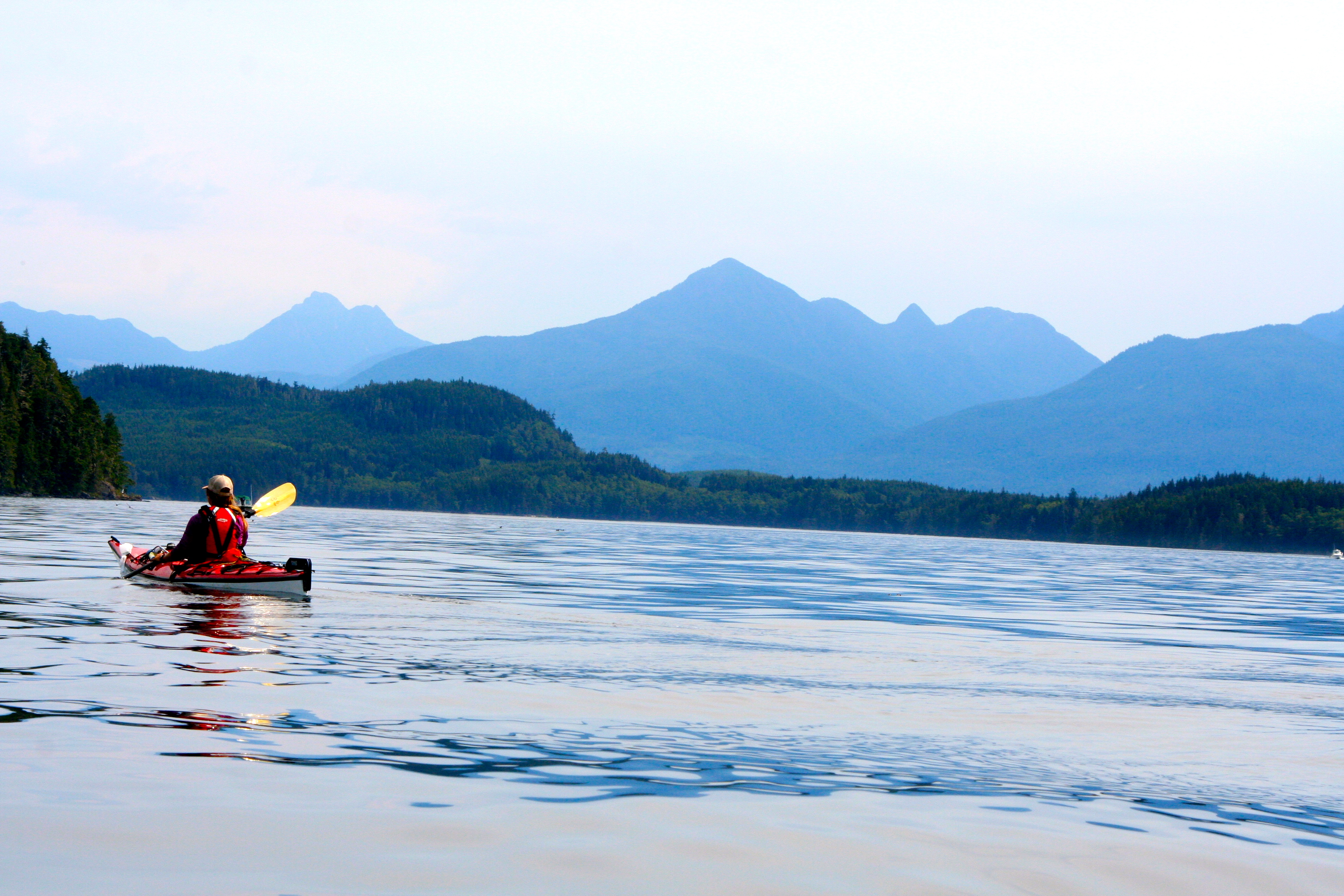 One of our guides leads the way as we make our way between islands off the we make our way off the northwest coast of Vancouver Island, British Columbia.