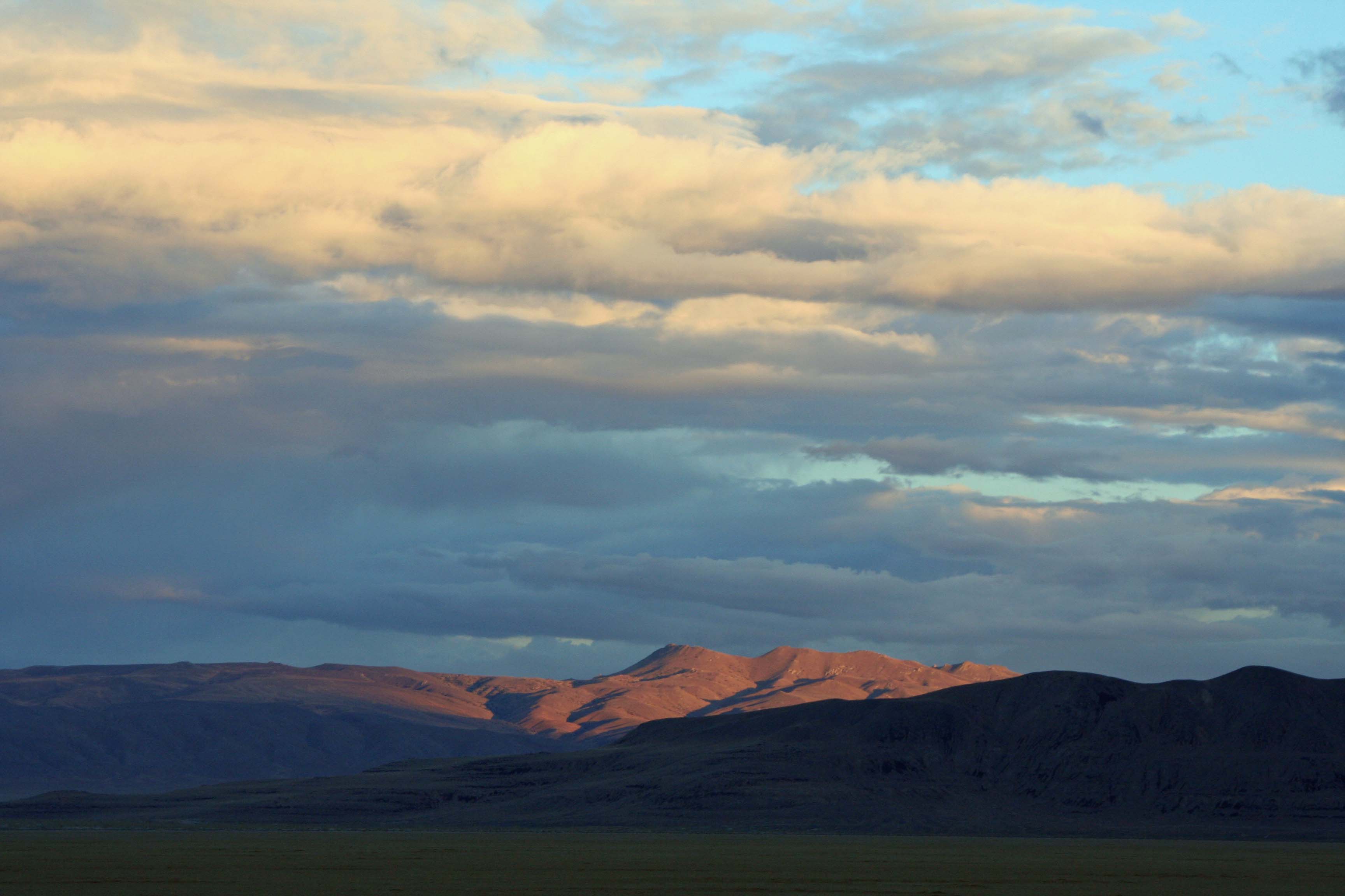 Sunset reflected on a mountain at Burning Man in the Black Rock Desert.