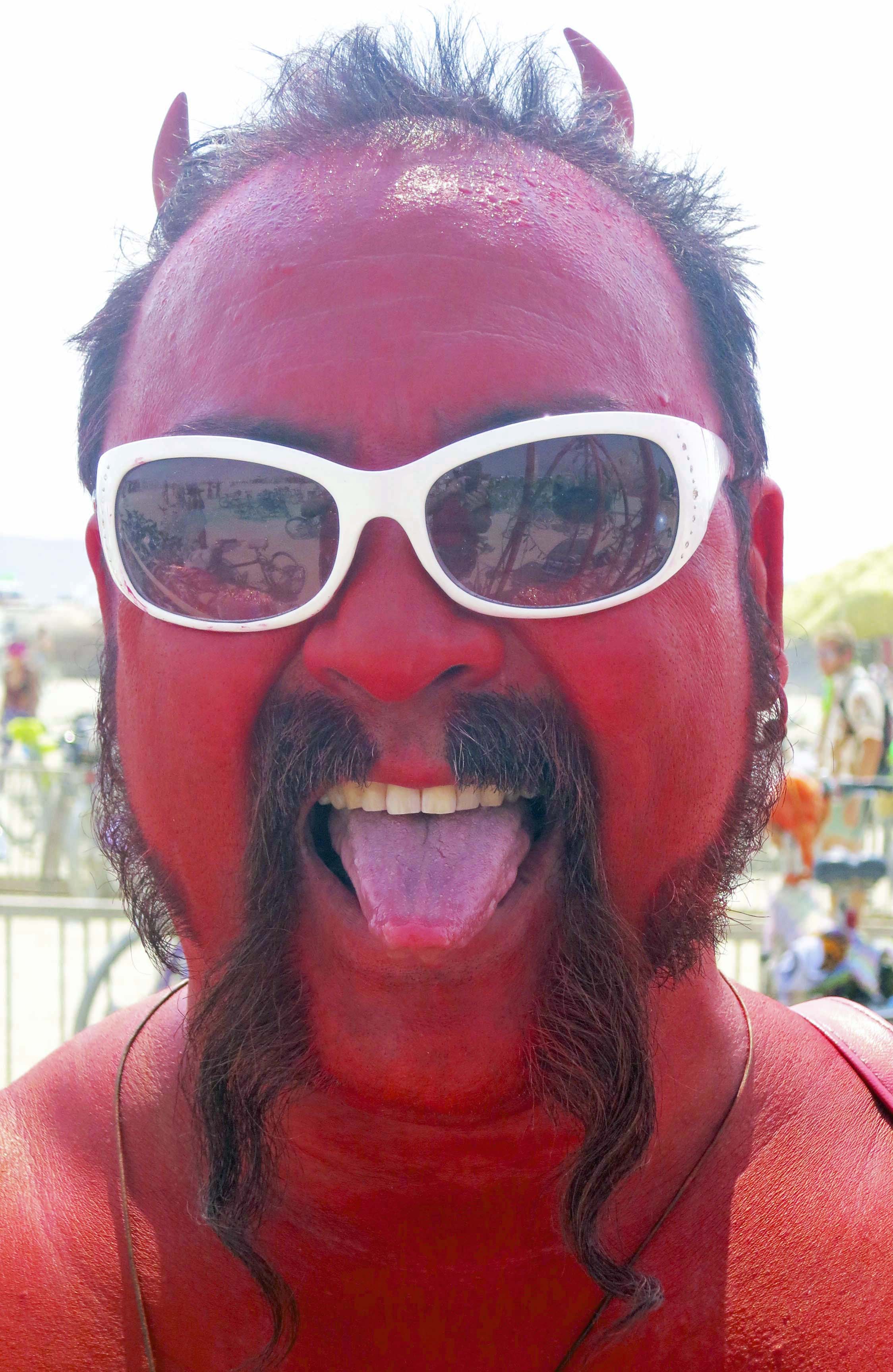 Small horns, red dye, and a magnificent mustache made for a magnificent devil. (One year, it seemed that half the women were wearing angel wings. )