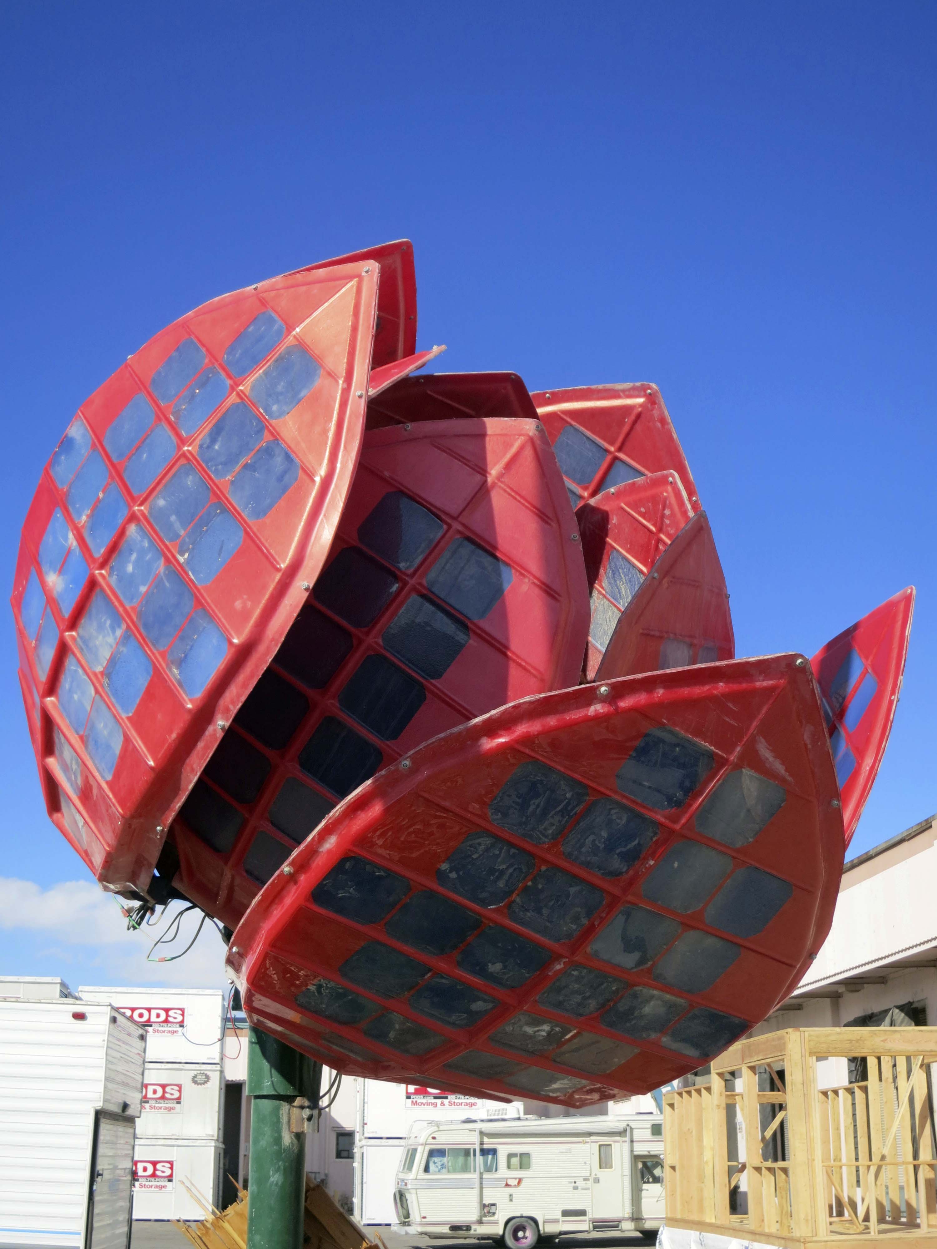 We drove around Sparks looking for the Generator. When we found this flower sculpture, we knew we had arrived. It is very Burning Man like. The small structure on the right is a tiny house that Matt is building for himself but hopes will become a model for other small houses in Reno.