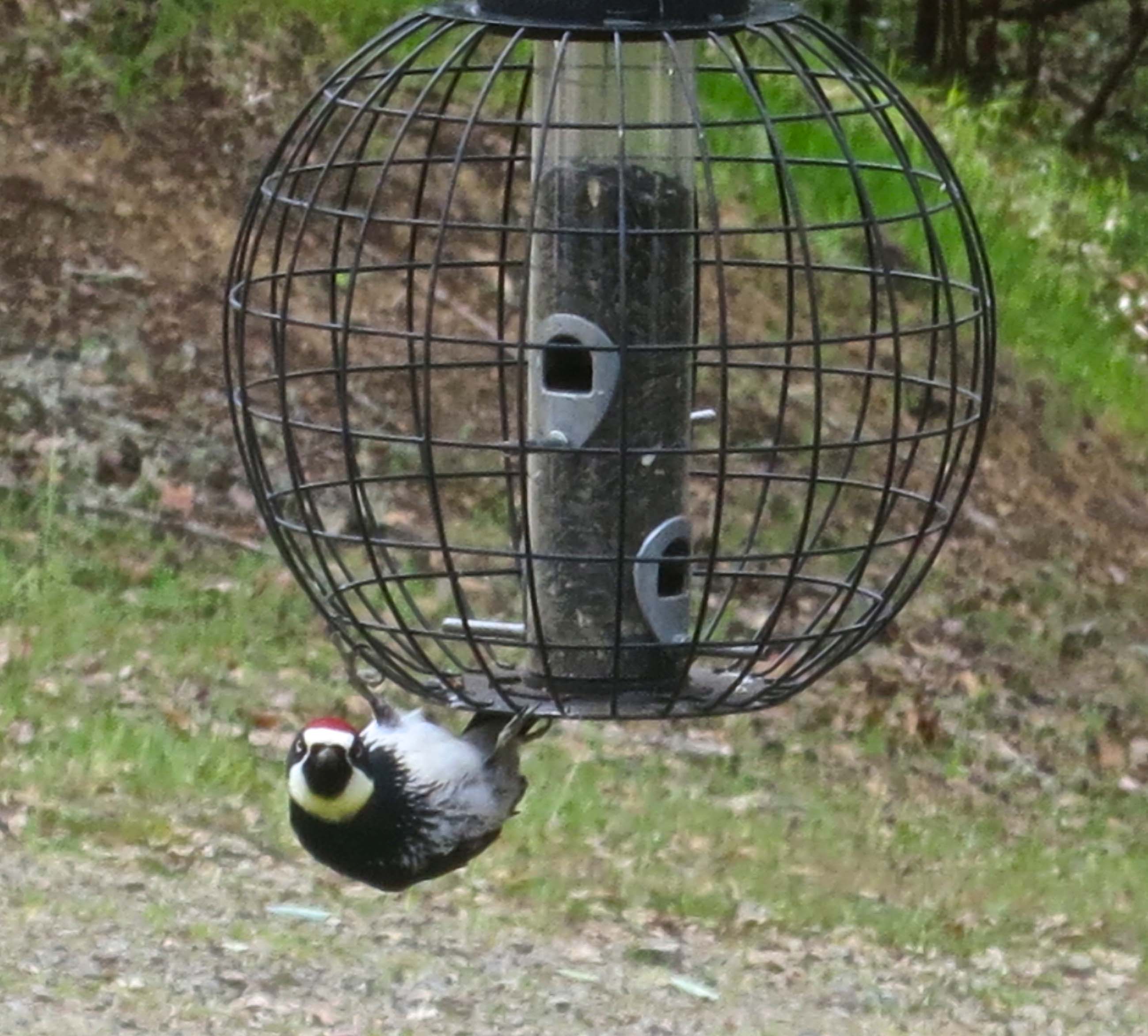 Peggy and I have a front row seat on the wild kingdom. Each window has its view. I like our library the best. I turn my swivel chair around so I can watch the action while I write. I’ve recently added a bird feeder. It’s a round cage with openings set up to allow some of our smaller feathered friends a chance to eat without competition from their larger cousins. Finches, juncos, tanagers and nuthatches take advantage of the opportunity. Inevitably, some of the seeds fall on the ground. The tanagers are particularly messy eaters. Turkeys, tree squirrels, and ground squirrels consider it their responsibility to clean up the leftovers. Nothing goes to waste.
