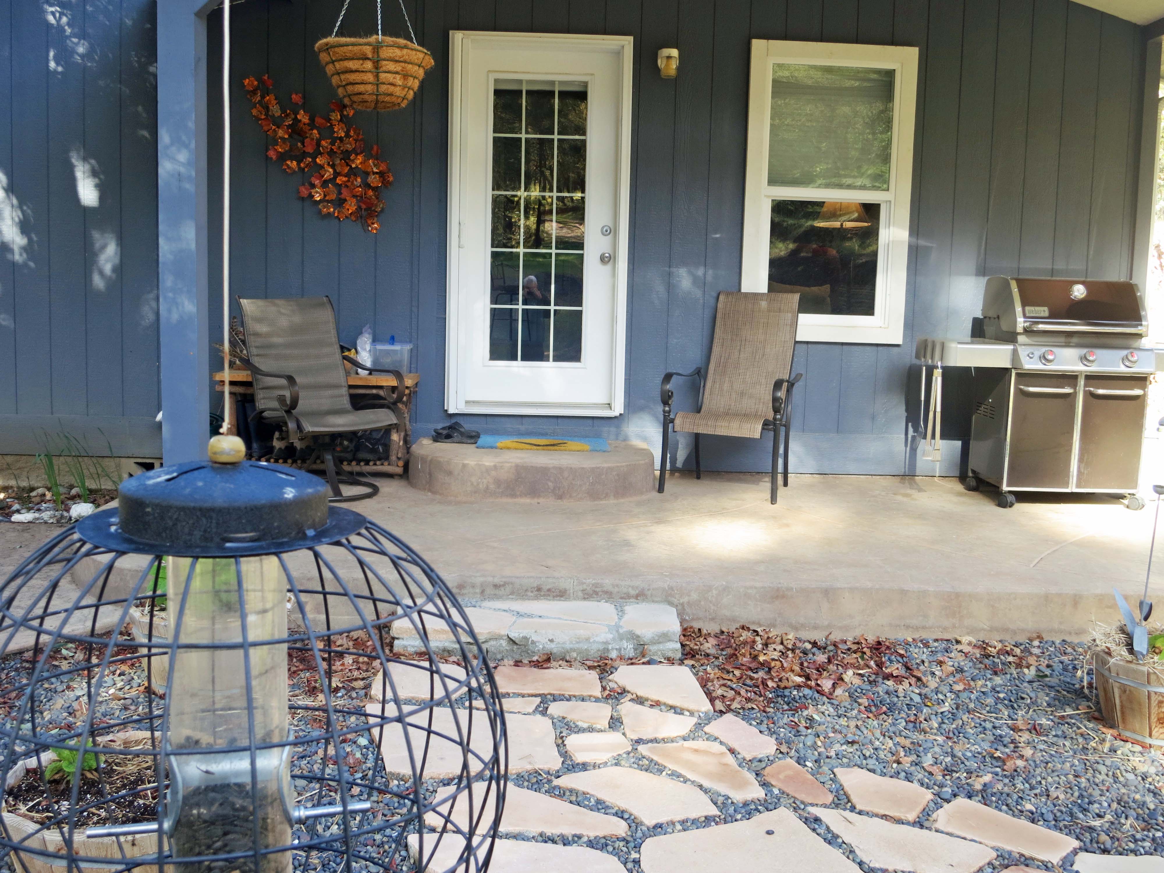 Our rustic back yard and the bird feeder. My look out window is on the right. A couple of years ago, a black bear turned over the Weber Grill. My daughter Tasha was sleeping in the closest bedroom. “Curtis!” she yelled.