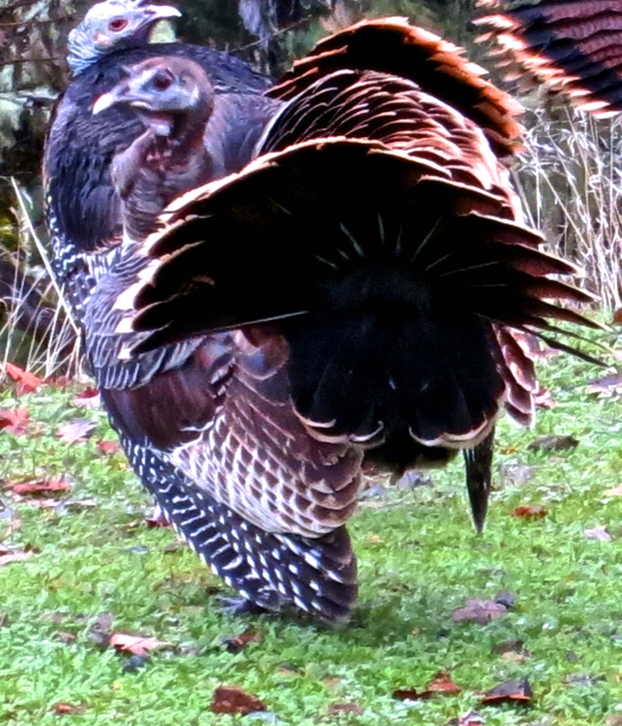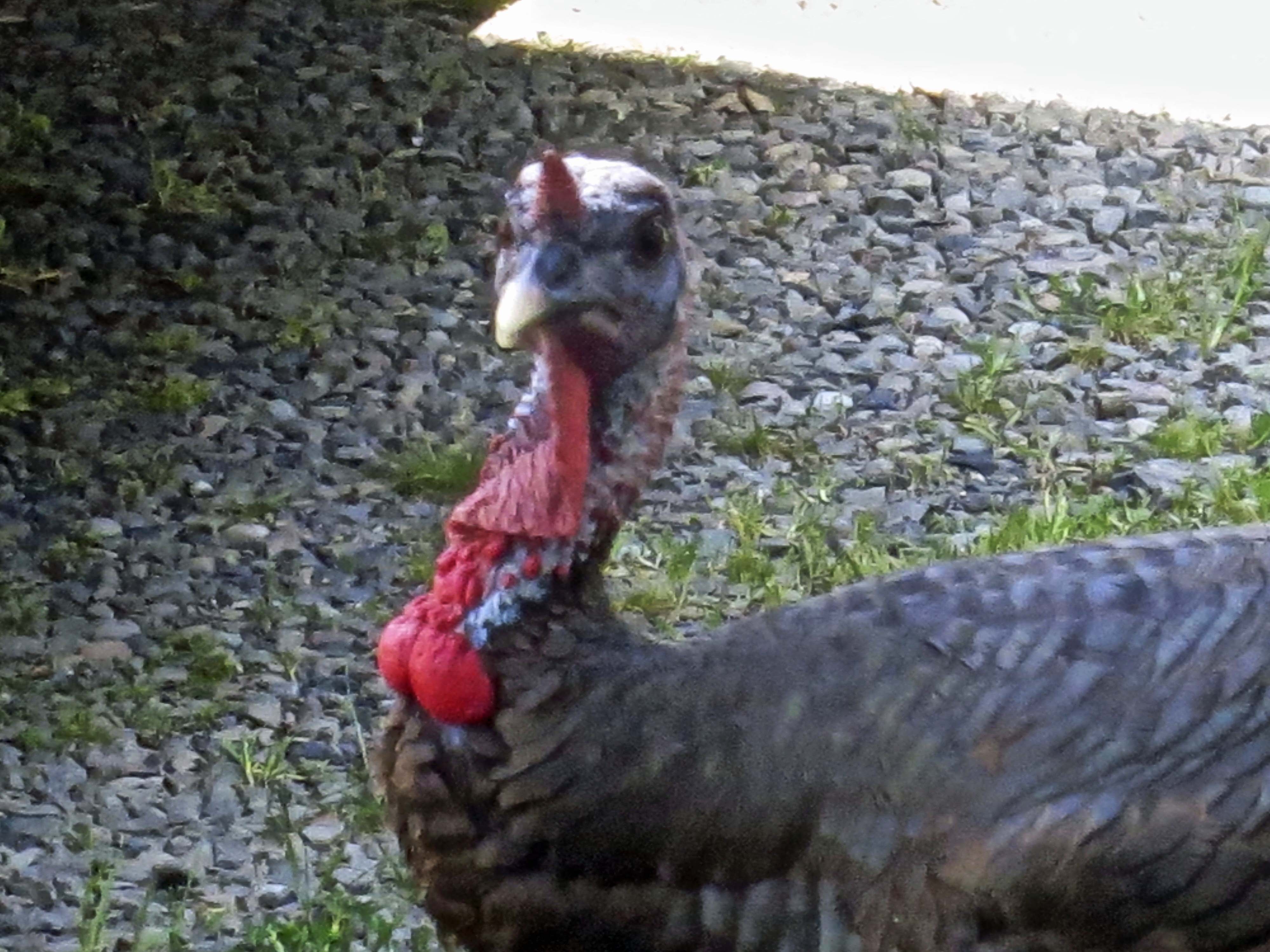 These guys are in constant motion, so Tom is slightly out of focus. But check out his snood and bright red wattles. How could the girls resist?