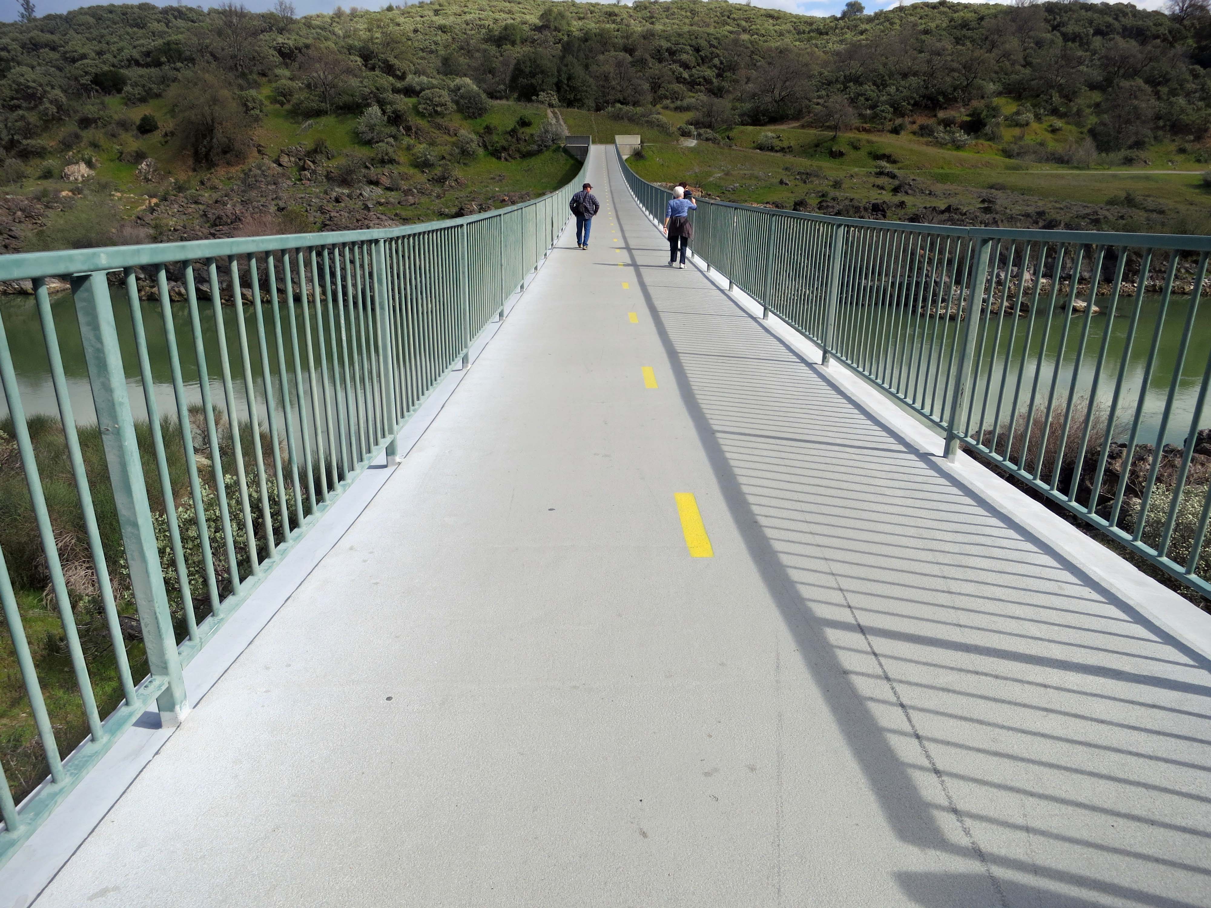 Peggy, along with our friends, Ken and Leslie, are half way across the 13-foot-wide, 418-foot-long bike bridge.