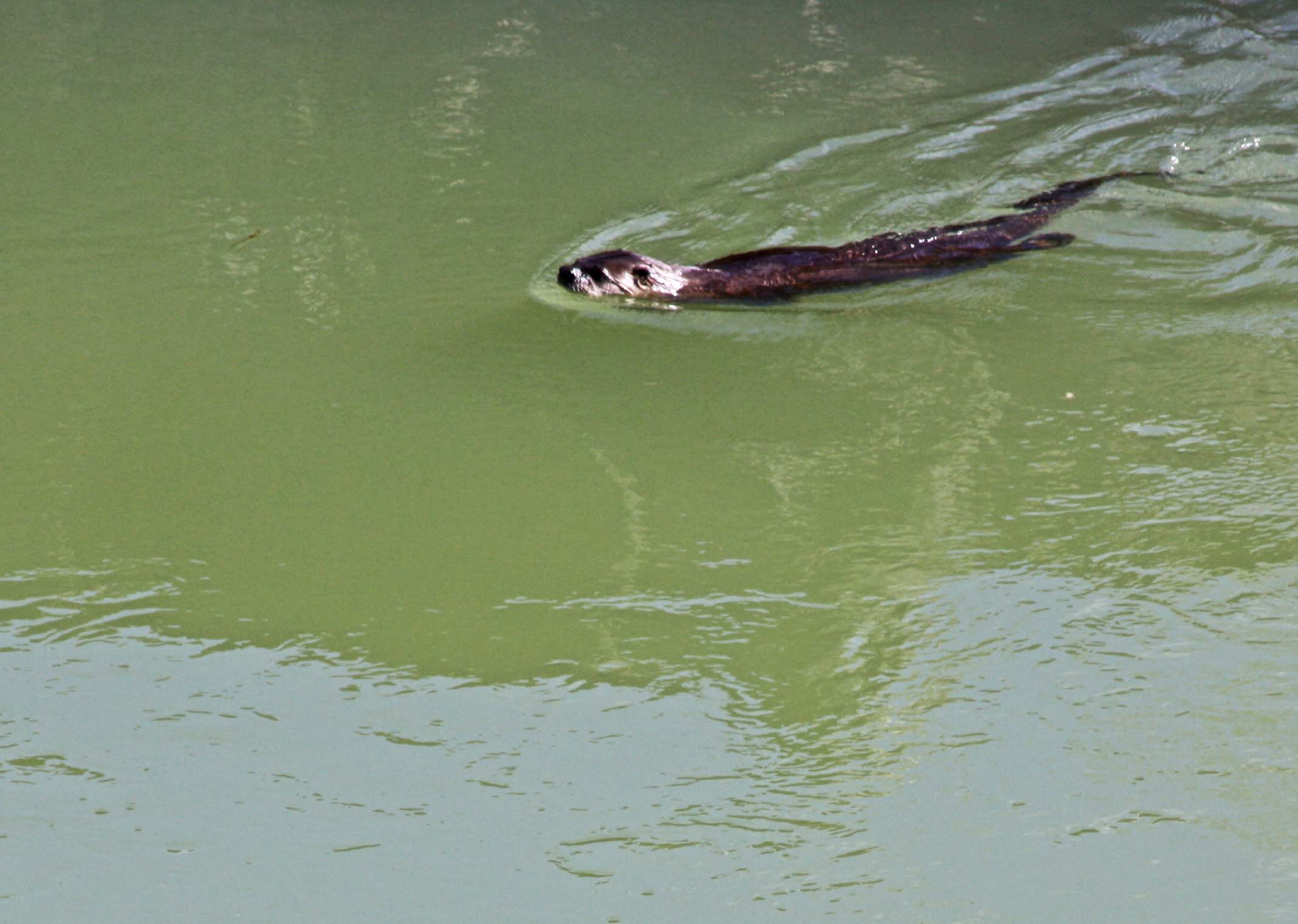 Otters are amusing–fun to watch. When I see them though they’re usually swimming around in our pond, feasting on the fish. I can’t say that is a happy sight. 🙂