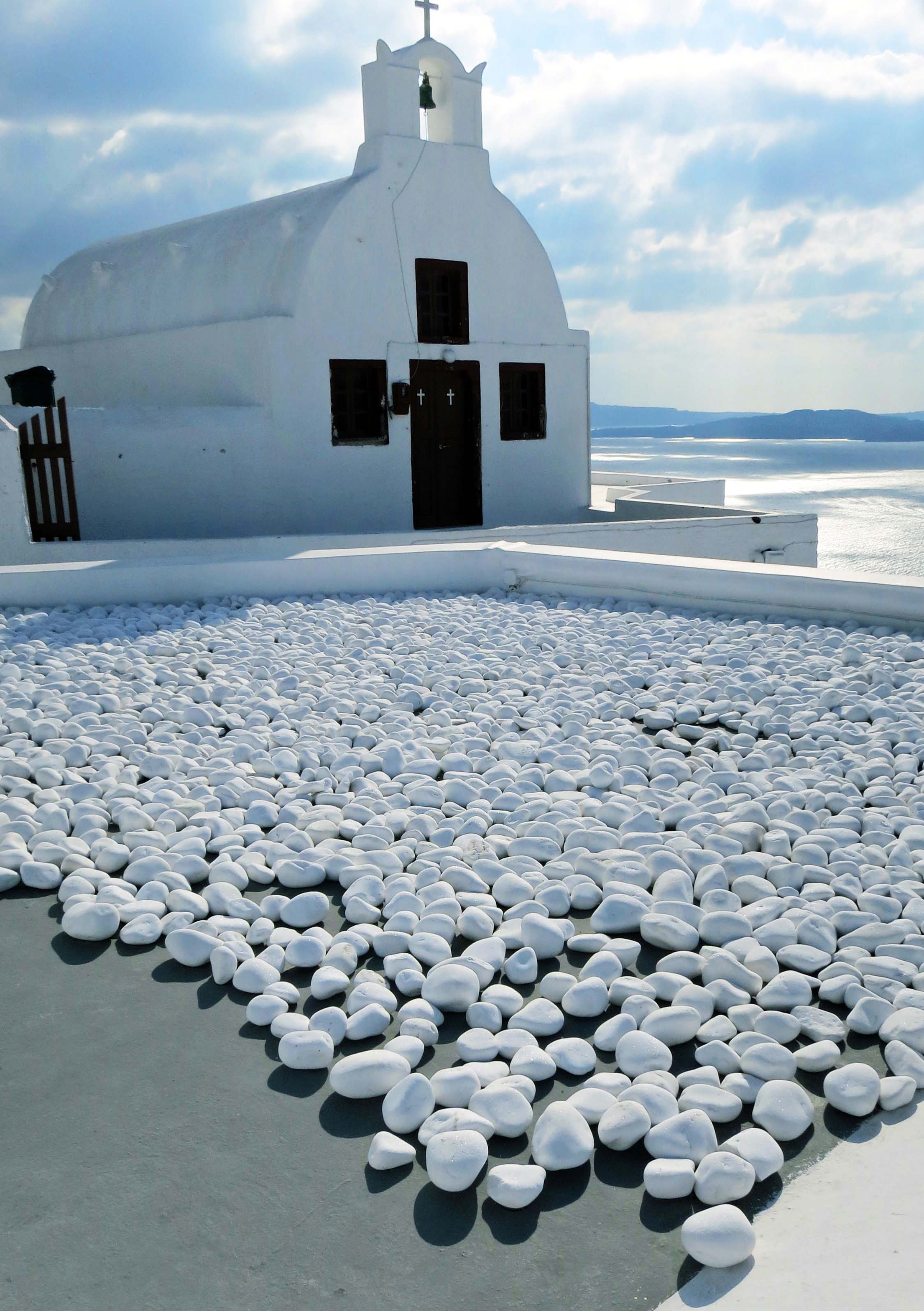 Think of the imagination that went into the decision to put white rocks in front of this white church.