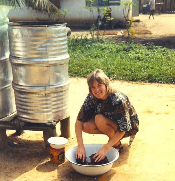 Laundry Day. Stephanie Vickers in her first month as a Peace Corps Volunteer in Liberia during 1971.