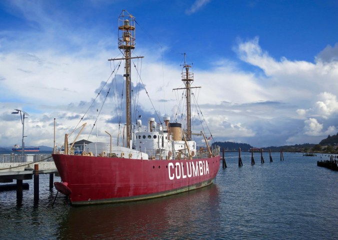 In the days before modern navigation equipment, the lightship Columbia served as an offshore lighthouse, aiding ships entering and leaving the Colombia River. The lightship maintained its position for weeks at a time and stocked in 12 tons of food, 13,000 gallons of fresh water and 47,000 gallons of fuel.