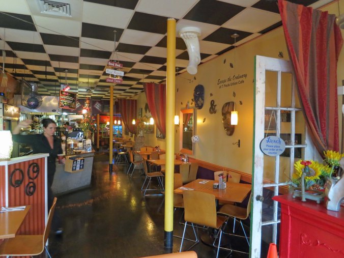 T. Pauls has an eclectic menu and a foot on the ceiling. I ate under the foot.