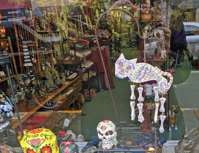 This shop was packed to the gills with tourist merchandise. Nice kitty. I think you are probably a Mexican immigrant, however, and I doubt you have papers. Watch out.