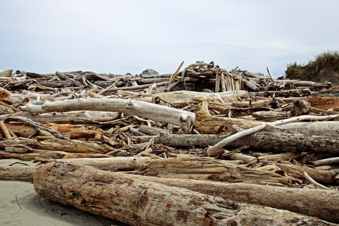 And this photo of a fort someone had built taking advantage of the driftwood. You can imagine the amount of fun kids would have building and playing in such a fort. Adults too. (Photo by Peggy Mekemson.)