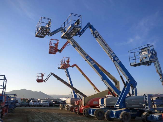 A substantial infrastructure is required to operate the event. These lifts are located in the Public Works Department lot.