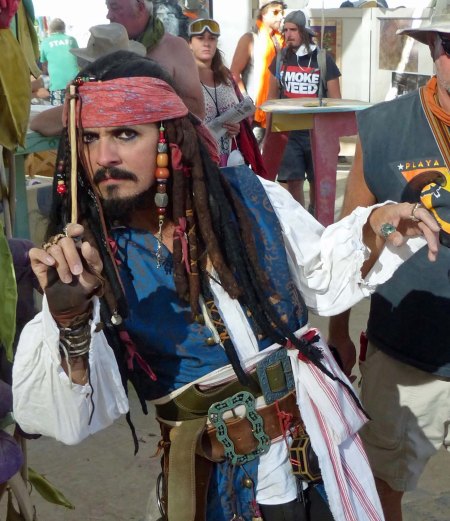 Costumes are an important part of individual creativity at Burning Man. Captain Jack, for example, looked a lot like Johnny Depp. Maybe he was. Hollywood has discovered Burning Man. (Photo by Don Green.)
