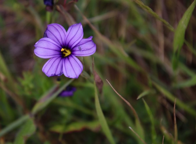 I took one look at your blue-eyed grass and thought, “What?” It sort of looks like ours, but not really. It’s the same old story: same genus, different species. I like the stripes on yours: missing on ours. I didn’t know there were wild hollyhocks, either. We had the cultivated ones, and I made dolls from them.