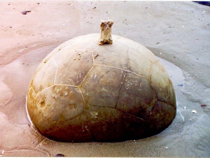 Peggy and I found this mudstone concretion in New Zealand on a South Island beach. Bone, who likes strange things, provides perspective.
