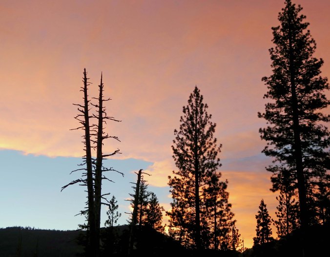 I’ve been out on a solo backpack trip this past week at the 5000-foot level in the Sierra Nevada Mountains north of Interstate 80, about half way between Sacramento and Reno. Peggy drove me up from Sacramento where she was spending time with her 96-year-old mother.
