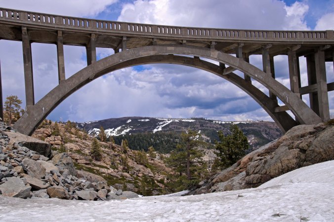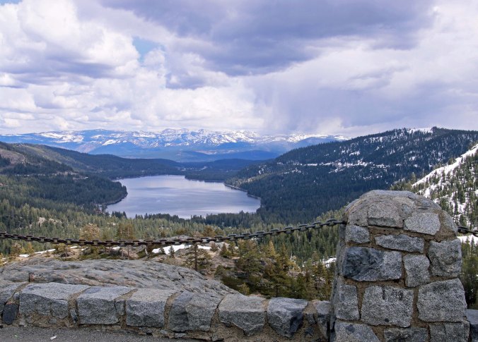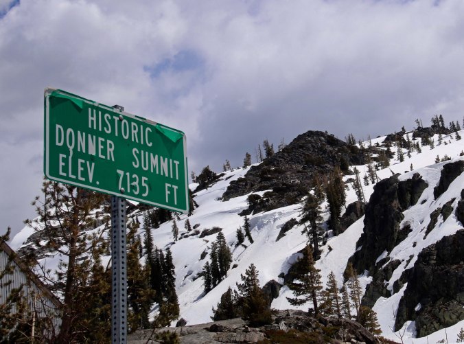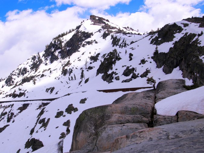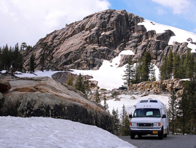 I don’t think Quivera, our small RV, would have liked the road, or fit. The backdrop is a peak bordering Donner Pass.
