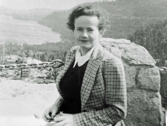 Another photo taken from the same location in 1942. I wasn’t born yet but I may be in the photo. Can you spot me? The photo is my mother. She and my father were on their way back to Oregon after a quickie wedding in Reno. I’ve sometimes wondered if I was the reason for the hurried trip.