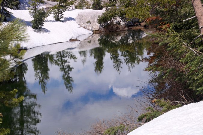 The snow at Donner Summit this year hearkened back to earlier years when I spent a lot of time in the winter at Serene Lakes near the summit. California’s drought had gone, at least for this year, and deep snow had blanketed the mountains. Given that a fair amount had already melted, this late spring photo from Serene Lakes provides an idea of just how deep it had been.