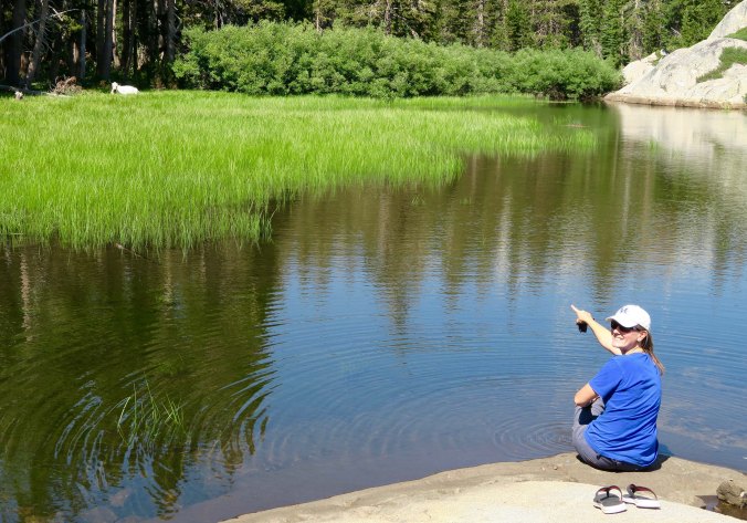 Tasha points out a white cow that stopped by for a visit, laid down in the grass, and happily chewed her cud while watching us. It was the same cow that had come to visit me up near Glacier Lake the week before. Maybe she was missing her people.