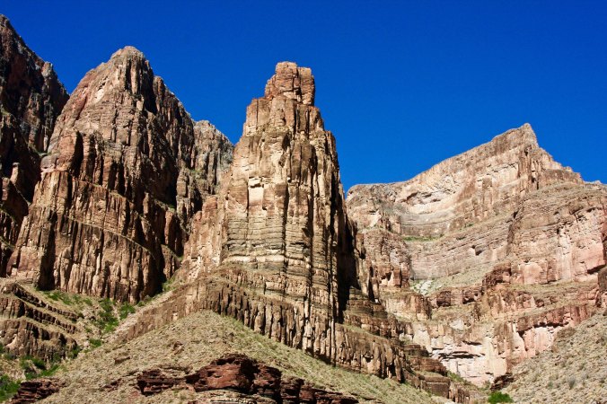 • The boatmen and women, in particular had to work hard,Peggy, especially when we faced headwinds the first couple of days and in ‘controlling’ the boat in rapids. After Lava Falls, it was pretty much smooth sailing, however. –Curt