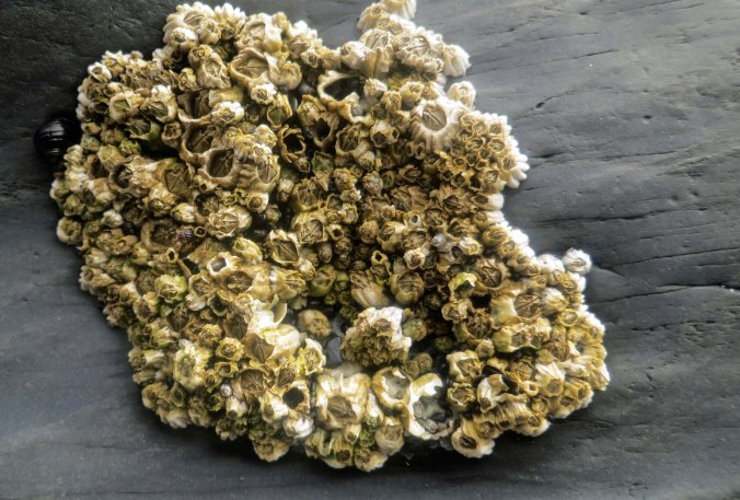 I wandered around at low tide (I always wander around at low tide) and found these barnacles.